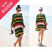 • 宝贝名称: 彩虹条纹斗篷衫 罩衫 罩裙 沙滩衣防晒衫 雪纺泳装 显瘦遮肉超大