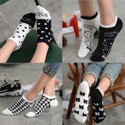 • 宝贝名称: 船袜 女夏季纯棉日韩系潮流袜 原宿黑白浅口卡通猫短袜子春秋薄款