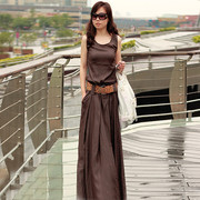 • 宝贝名称: 无袖圆领大摆裙 咖啡色优雅长裙气质沙滩旅游修身显瘦韩版连衣裙
