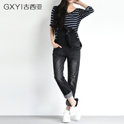 • 宝贝名称: 古西亚秋装新款黑色背带裤女长裤 韩版磨白破洞连体裤小脚裤潮