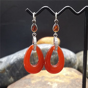 • 宝贝名称: 水滴形纯银天然红玛瑙耳环耳坠红玉髓耳饰手工镶嵌锆石银耳钩耳扣