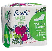 • 宝贝名称: 现货德国facelle卫生巾棉柔亲肤少女之爱日用超薄/2滴/护翼16片