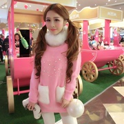 • 宝贝名称: 2015秋冬季新款女装日系甜美公主镶钻钉珠毛毛口袋兔毛连衣裙毛衣