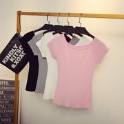 • 宝贝名称: 夏季新款韩版纯色修身显瘦一字领针织短袖T恤女冰丝打底衫上衣薄
