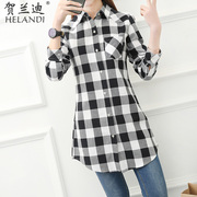 • 宝贝名称: 衬衫女长袖中长款2017春装新款韩版宽松衬衣百搭学生长款格子外套