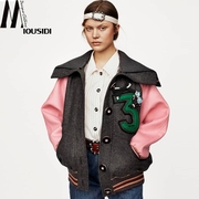 • 宝贝名称: 17走秀款灰粉色毛呢相拼宽松蝴蝶结手工钉珠字母刺绣短外套棒球服