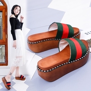 • 宝贝名称: 松糕厚底拖鞋女夏2018新款韩版学生防水台高跟柳钉一字凉拖鞋女潮