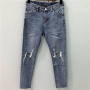 • 宝贝名称: bluefactory2019新品弹力修身破洞牛仔裤小脚铅笔裤九分裤女7950