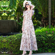 • 宝贝名称: 2019夏新品短袖圆领碎花雪纺连衣裙女修身长裙波西米亚大摆裙气质