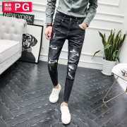 • 宝贝名称: 飘港秋季新款破洞牛仔裤男修身小脚裤子韩版潮流弹力百搭乞丐长裤