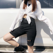 • 宝贝名称: 牛仔短裤2019新款女五分裤高腰显瘦弹力紧身中裤黑色外穿裤子女潮