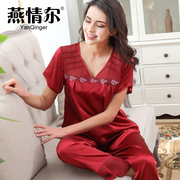 • 宝贝名称: 夏季女丝绸睡衣短袖长裤性感蕾丝冰丝家居服女士丝质睡衣两件套装