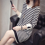 • 宝贝名称: 大码女装打底衫新款韩版秋冬胖mm洋气遮肚减龄条纹毛衣针织连衣裙
