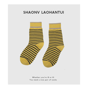• 宝贝名称: 满35包邮 少女老寒腿黄黑色条纹小蜜蜂中桶棉袜百搭男女款校园风