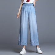 • 宝贝名称: 阔腿裤女显高天丝牛仔裤夏季新款小个子高腰薄款大码宽腿裤