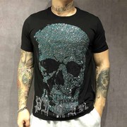 • 宝贝名称: 德国潮牌夏季薄款PP烫钻骷髅头修身丝光棉休闲短袖圆领T恤大码男
