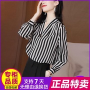 • 宝贝名称: 高档面料A版序铎黑白条纹衬衫女长袖2020春夏新款时尚v领洋气宽