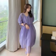• 宝贝名称: 夏季女装香芋紫色仙女裙纱裙法式初恋桔梗长裙泡泡袖连衣裙短袖