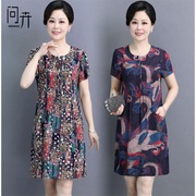 • 宝贝名称: 中老年人夏装棉绸连衣裙女中长款新款大码宽松短袖裙子50岁妈妈装