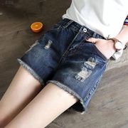 • 宝贝名称: 。牛仔短裤女大码高腰宽松韩版潮显瘦高腰休闲破洞热裤韩版直筒百