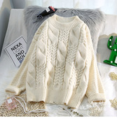 • 宝贝名称: 复古粗麻花毛衣女套头超火的宽松洋气外穿上衣韩版慵懒内搭毛线衣
