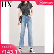 • 宝贝名称: 浅色直筒高腰显瘦牛仔裤女2021年春秋新款小个子九分宽松烟管裤子
