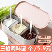• 宝贝名称: 调料盒厨房用品家用三格调味罐套装调味盒厨房调味盐罐调料瓶配勺