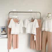 • 宝贝名称: 金 仙气两件套泡泡袖娃娃衬衫褶皱阔腿裤两件套夏季2021新款kimy
