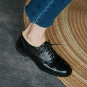 • 宝贝名称: 黑色小皮鞋女英伦风真皮软皮软底复古布洛克雕花系带中跟深口单鞋