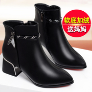 • 宝贝名称: 妈妈棉鞋女冬季加绒保暖软底新款粗跟中跟靴子短靴中年人女鞋皮鞋