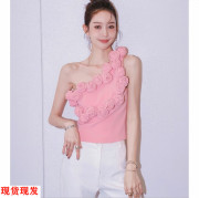 • 宝贝名称: 法式重工粉色立体玫瑰花朵上衣女夏短性感露单肩抹胸吊带背心外穿