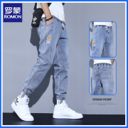 • 宝贝名称: 罗蒙牛仔裤男夏季薄款束脚裤潮牌百搭工装哈伦裤子男生九分休闲裤