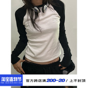 • 宝贝名称: CLOUD WILD白云野边 美式黑白拼色插肩袖T恤女长袖撞色上衣秋复古