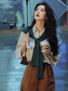 • 宝贝名称: 秋冬新款设计感别致披肩条纹两件套衬衫高腰灯芯绒休闲短裤套装女