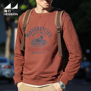 • 宝贝名称: 砖红色重磅加厚纯棉卫衣男2022新款 秋冬美式360g圆领抓绒打底衫