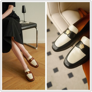 • 宝贝名称: 现货正品Weslien Rowe拼色乐福鞋女圆头低跟浅口山茶花金属小皮鞋