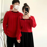 • 宝贝名称: 情侣装秋冬款耶诞穿搭红色短款毛衣女法式方领上衣龙年过年针织衫
