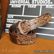 • 宝贝名称: 亘古特价清货复古风朋克铆钉男士头层牛皮皮带女士牛仔休闲裤腰带