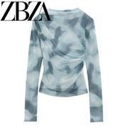 • 宝贝名称: ZA春季圆领修身显瘦半透明T恤印花绢网长袖立领上衣 4661001