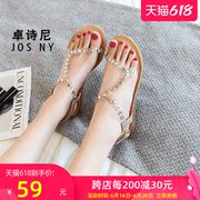 • 宝贝名称: 卓诗尼凉鞋女夏2021年新款仙女风水钻平底一字带百搭时尚罗马凉鞋
