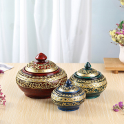 • 宝贝名称: 进口手工制作精致创意彩绘首饰盒收纳盒泰国实木打造储物盒椭圆形