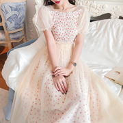 • 宝贝名称: 一字肩波点雪纺连衣裙2019夏季新款小清新甜美仙女超仙森系网纱裙