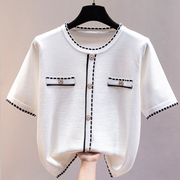 • 宝贝名称: 哥弟阿玛施新款2021夏小香风短袖t恤宽松冰丝针织短款外套上衣女