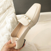 • 宝贝名称: 方头浅口粗跟两穿软皮乐福鞋sw珍珠扣一脚蹬小皮鞋真皮欧美风单鞋