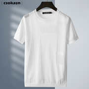 • 宝贝名称: 镂空冰丝短袖T恤男潮牌百搭冰感港风时尚ins白色夏装新款上衣体恤