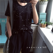 • 宝贝名称: 16号。韩国订单款 2016夏季新品大圆领薄款超酷柳钉短袖T无敌显瘦