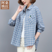 • 宝贝名称: 长袖格子衬衫女宽松大码2021年春秋新款气质百搭全棉时尚女装上衣