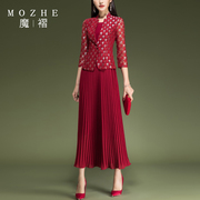 • 宝贝名称: 魔褶红色套装2021年春季新款七分袖外套减龄洋气修身百褶裙两件套