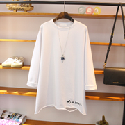 • 宝贝名称: 刺绣T恤女米奇头长袖宽松打底衫休闲白色下摆破洞设计TEE春装体恤