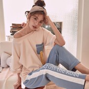 • 宝贝名称: 2021新睡衣女夏棉质短袖长裤韩版清新甜美全棉薄款宽松家居服套装